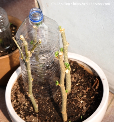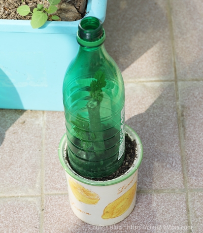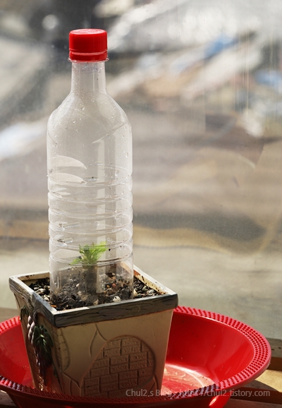소주병(플라스틱)으로 감싸 키우는 아이인데요