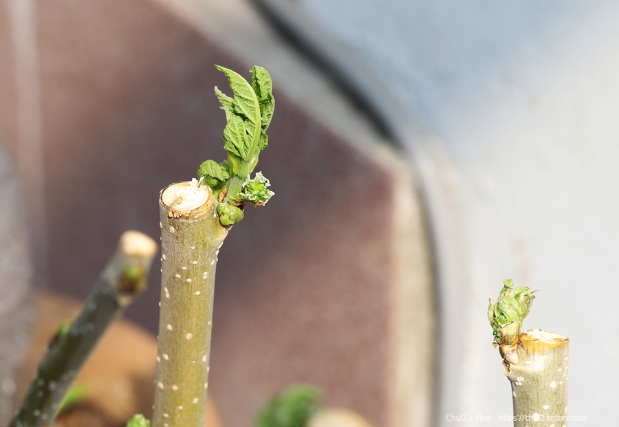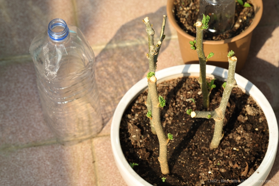 베란다 뽕나무 삽목 2주/벌써 열매가 열렸어요~