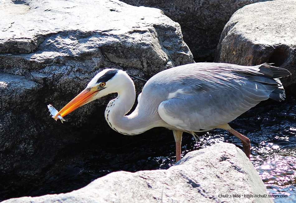 왜가리가 사냥하는 모습을 지켜보던 사람들은