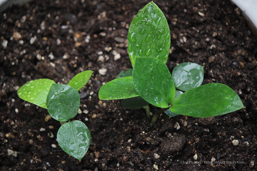 금전수 구근(뿌리)을 심으면 새싹이 이렇게 나와요 ~