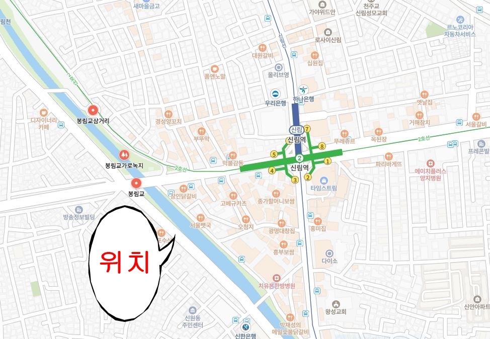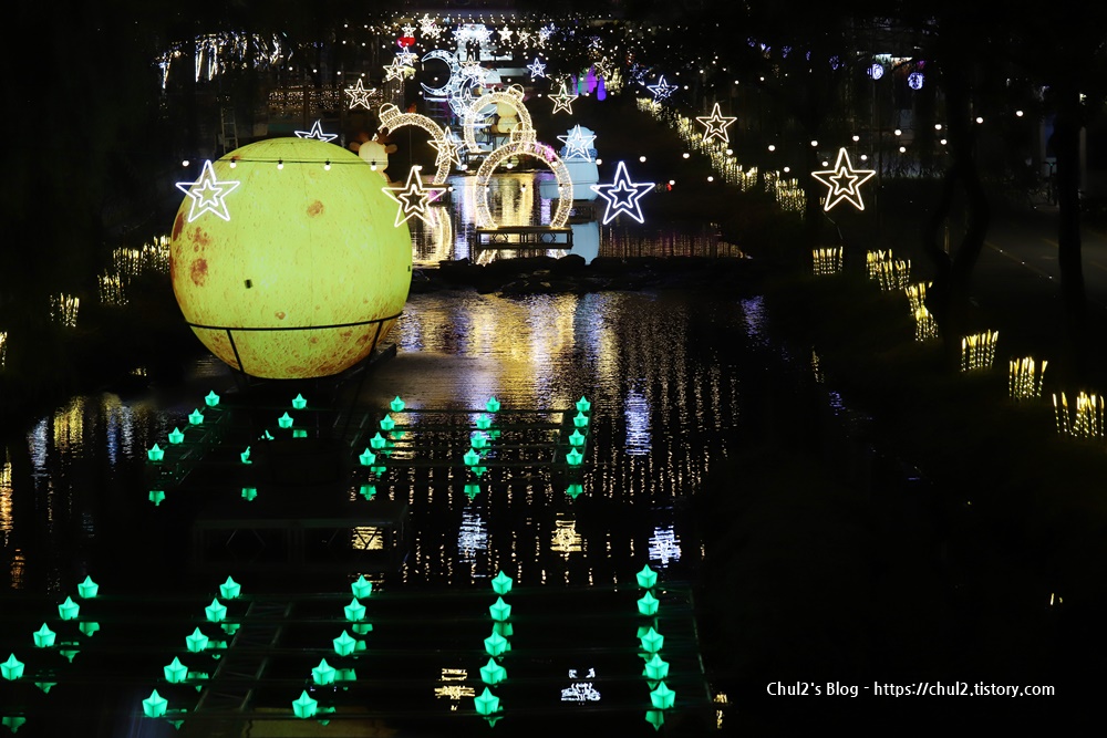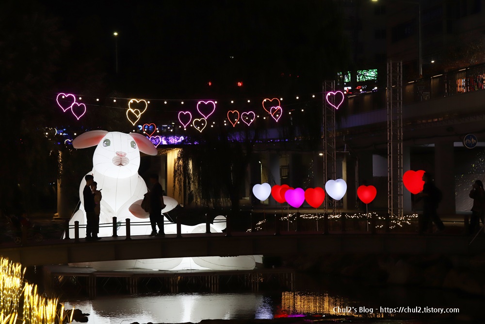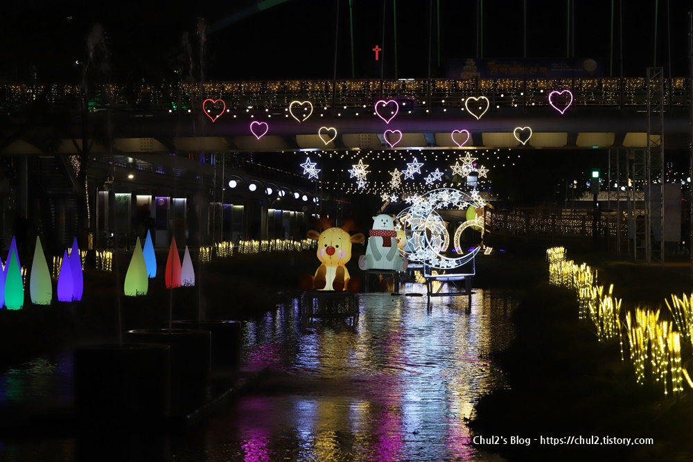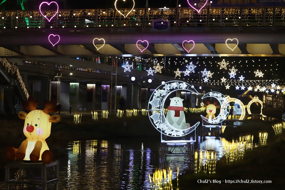 관악구 별빛내린천 (봉림교에서부터 신림교 구간)에 조명과 조형물들이 장식되어 있어요.